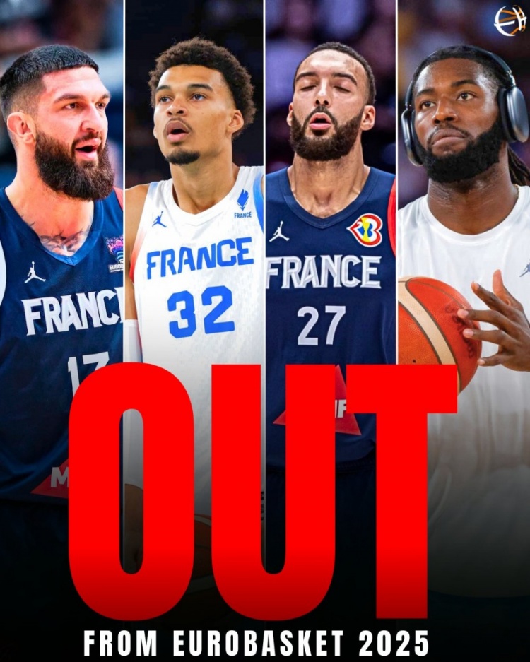 至此,法国主要内线球员文班亚马、戈贝尔、莱索尔和普瓦里耶都会缺阵。这样一来,主力内线仅剩亚布塞莱了!